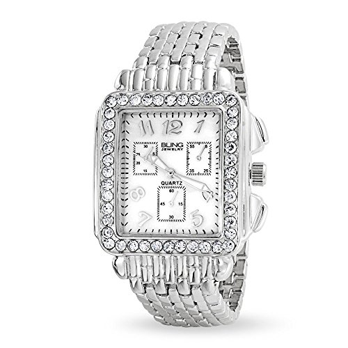 Best Seller! Bling Jewelry Square Stainless Steel Back Crystal Art Deco Style Womens Fashion Watch Review